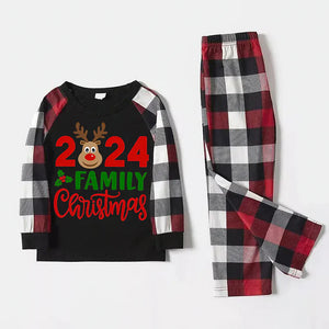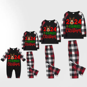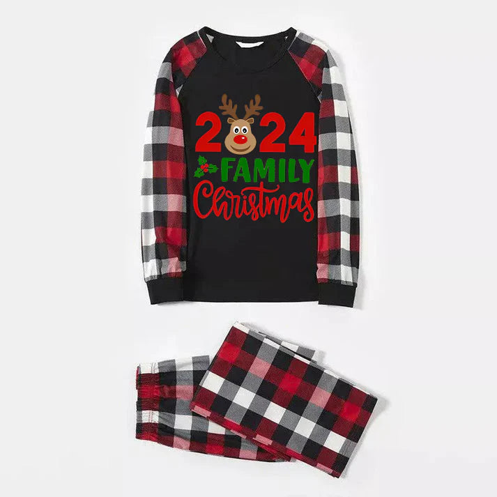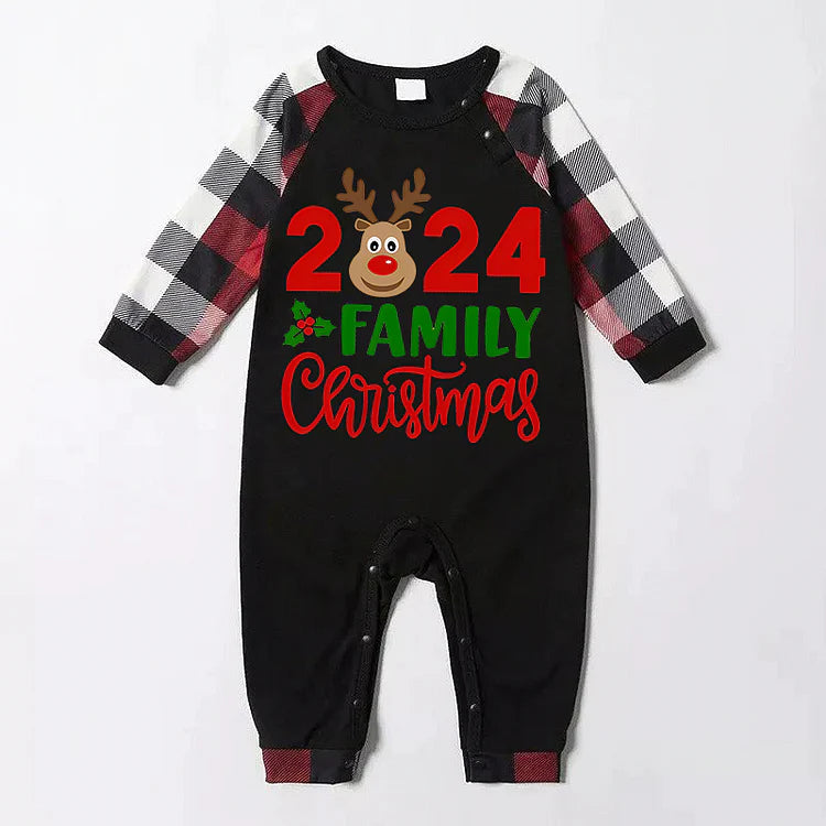 2024 Christmas Reindeer Print Black Plaid Family Pajama Set