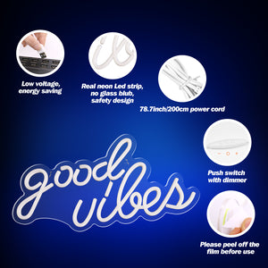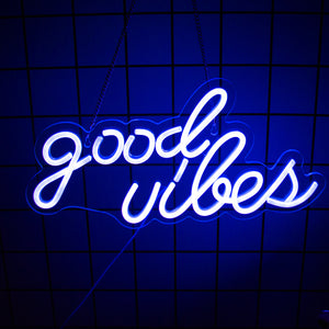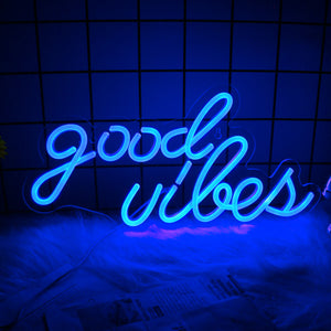 Whether you're setting the mood for a party or enhancing your personal space, "Blue Good Vibes LED Neon Sign" instantly elevates the vibe. Bold, fun, and full of personality, it will become an indispensable highlight in your life, lighting up every step you take.