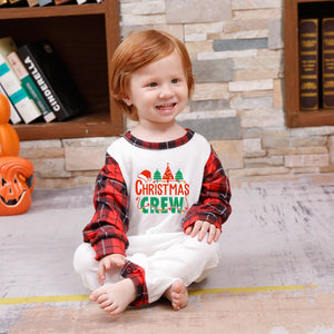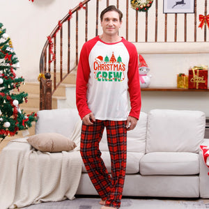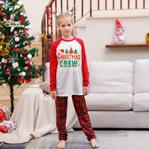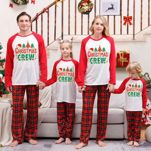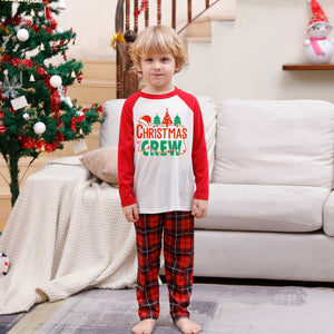 Christmas Cousin Crew red plaid parent-child pajamas set with Christmas hat print