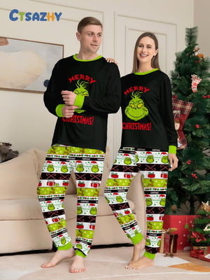 Christmas Grinch Cartoon Print Family Matching Long Sleeve Pajama Set