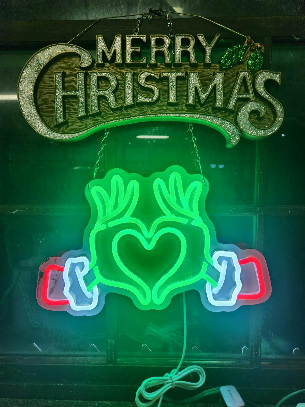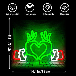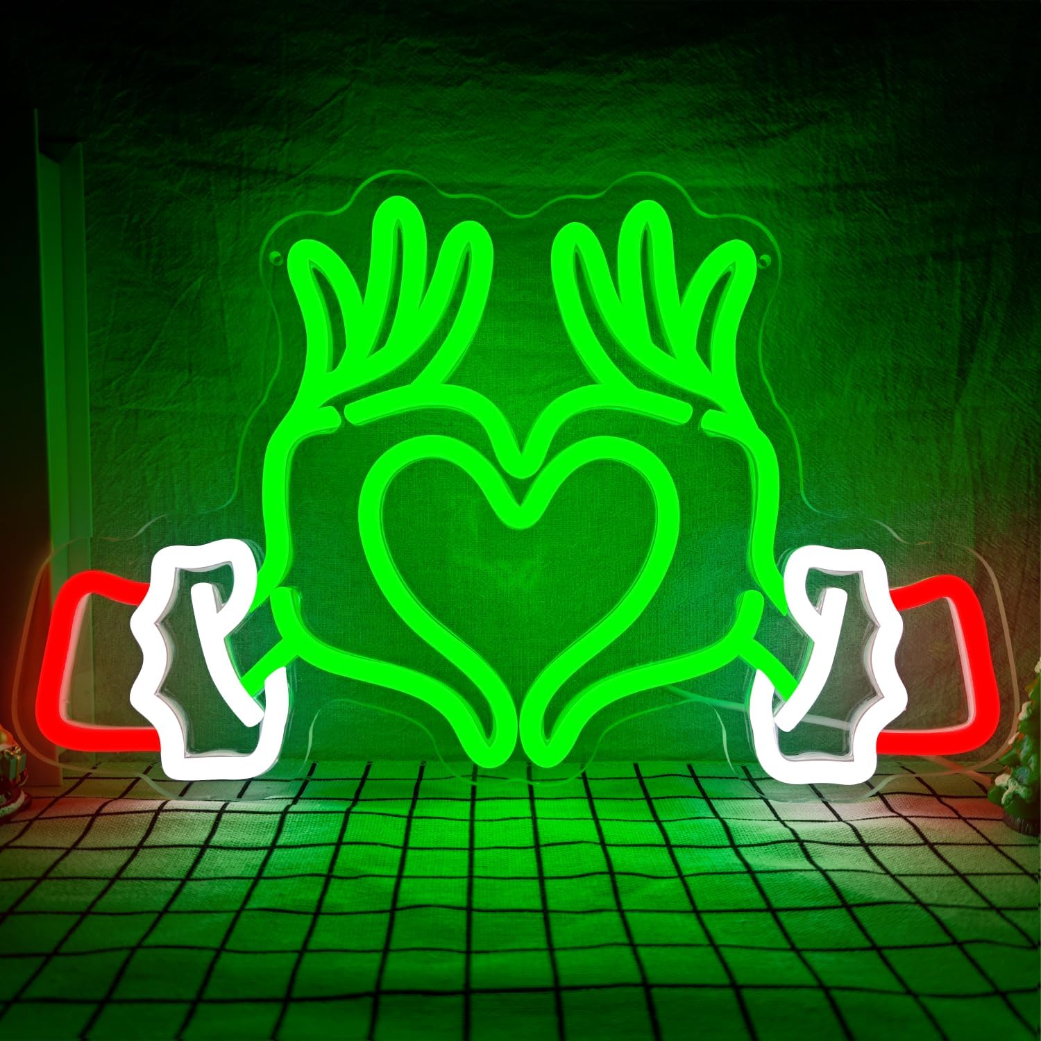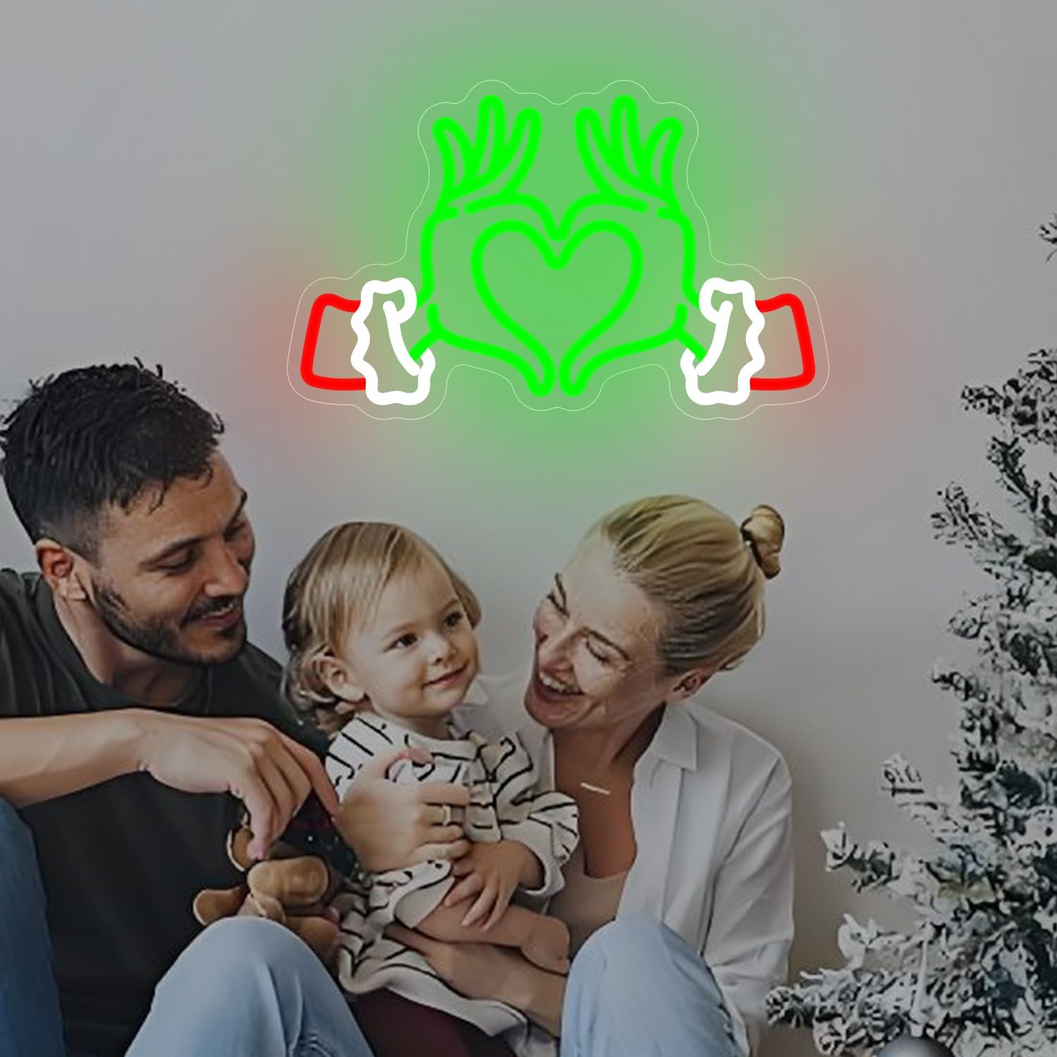 Whether you're setting the mood for a party or enhancing your personal space, "Christmas Grinch Heart Hand Neon Sign" instantly elevates the vibe. Bold, fun, and full of personality, it will become an indispensable highlight in your life, lighting up every step you take.