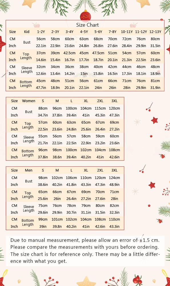 🔔【Warm Tips 】Family Christmas Pajamas are easy to care for: machine wash or hand wash. Each size must be purchased separately. Please check the size chart carefully before placing your order