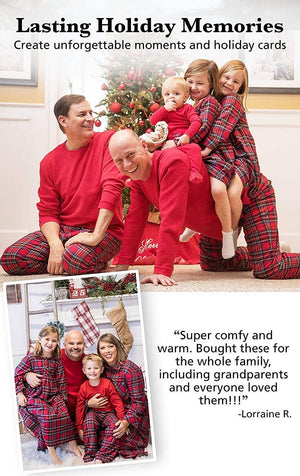🎅【Safe and Soft】 Christmas pajamas for family made of soft, skin-friendly material. It has excellent elasticity, perfect fit, skin-friendly, breathable, soft and comfortable, no pilling, no fading, our Christmas kids pajamas are certified for children's merchandise safety and pass certain specific flammability tests to ensure children's safety