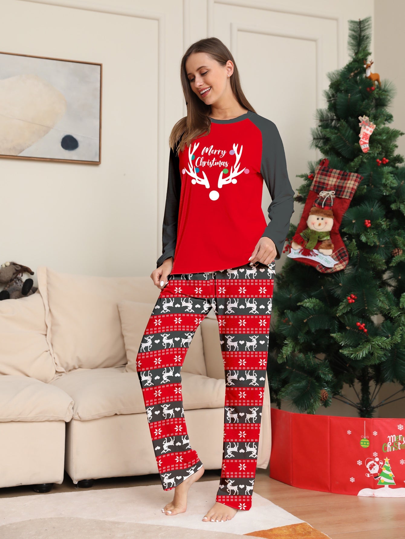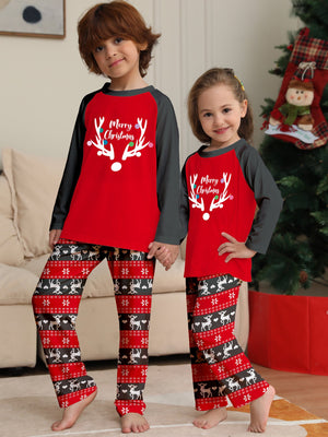Christmas Reindeer Cartoon Letter Print Long Sleeve Pajama Set