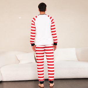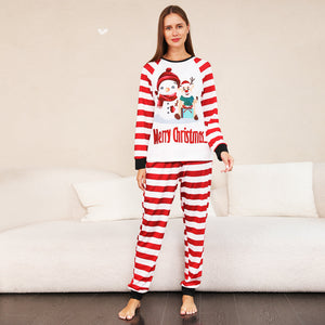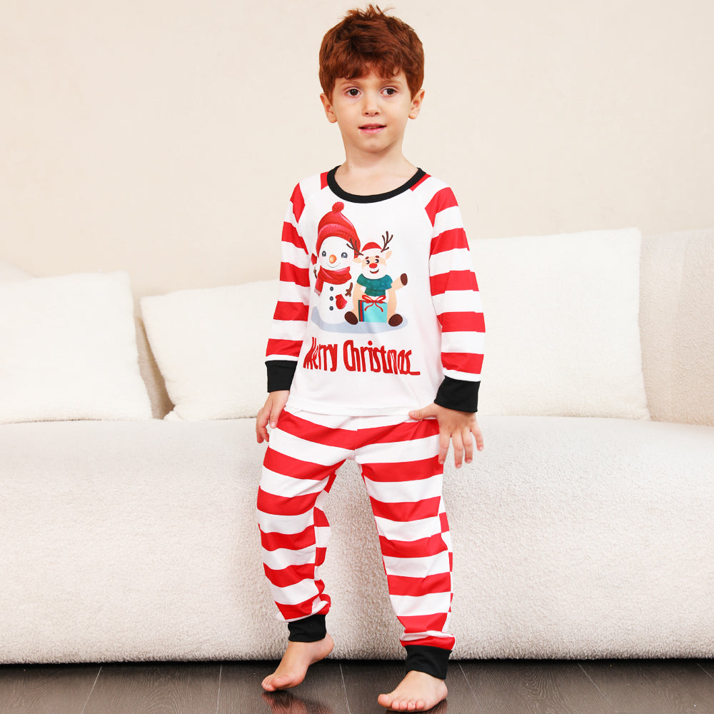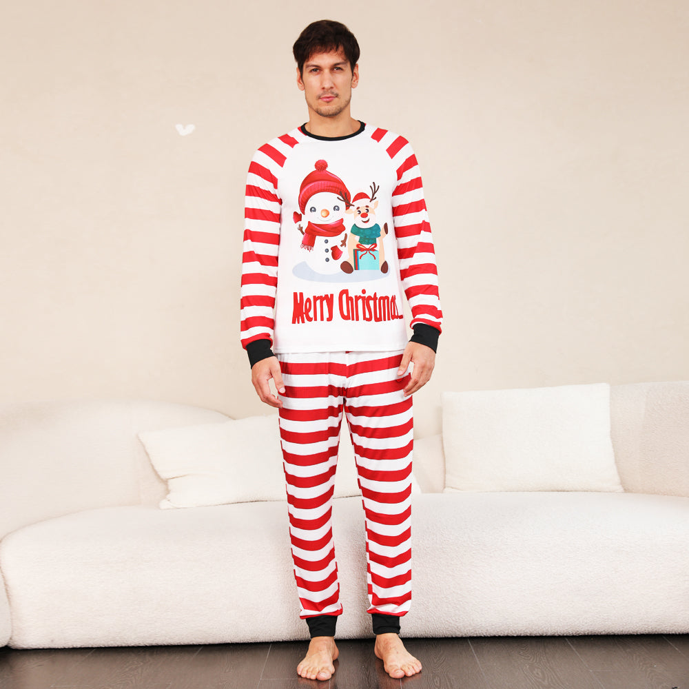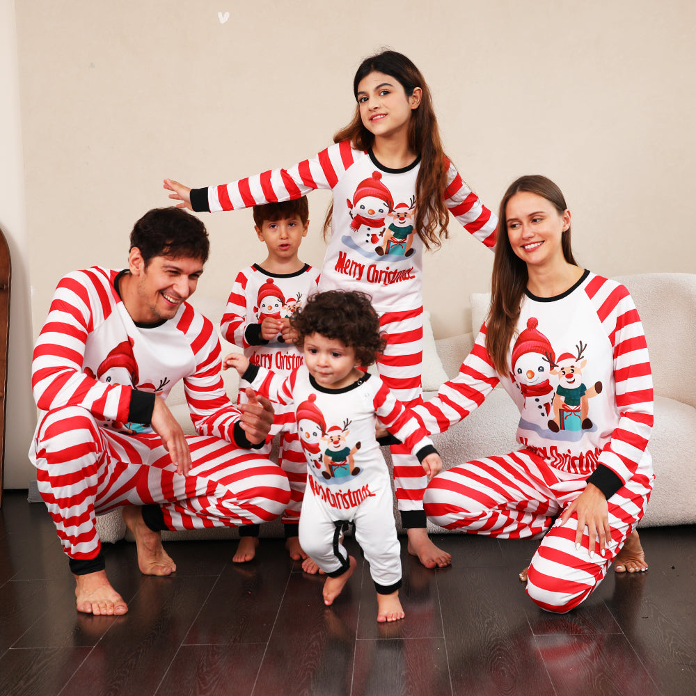 Christmas Striped Family Pajamas Set Snowman & Reindeer Cartoon Pattern