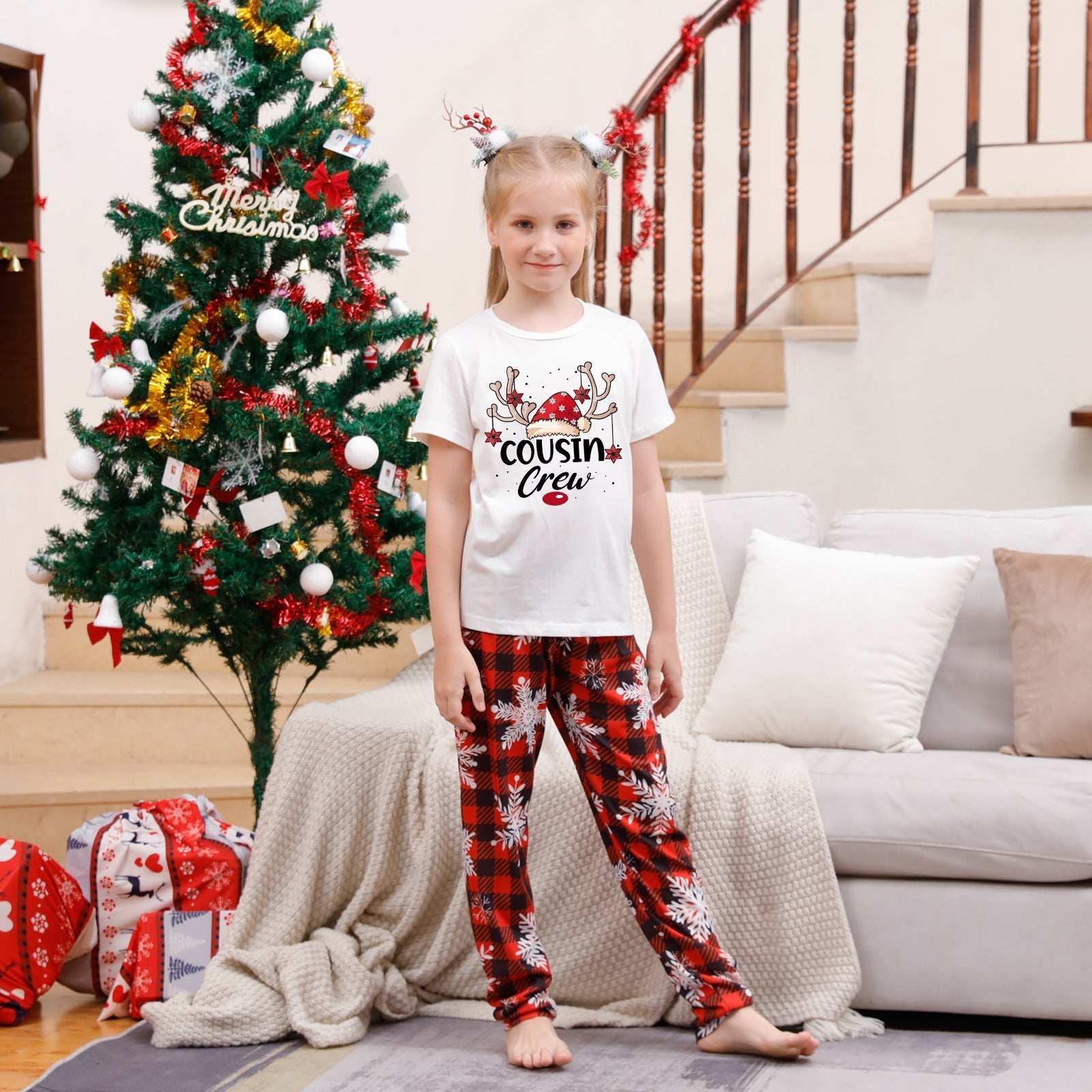 Cousin Crew parent-child pajama set Christmas hat print
