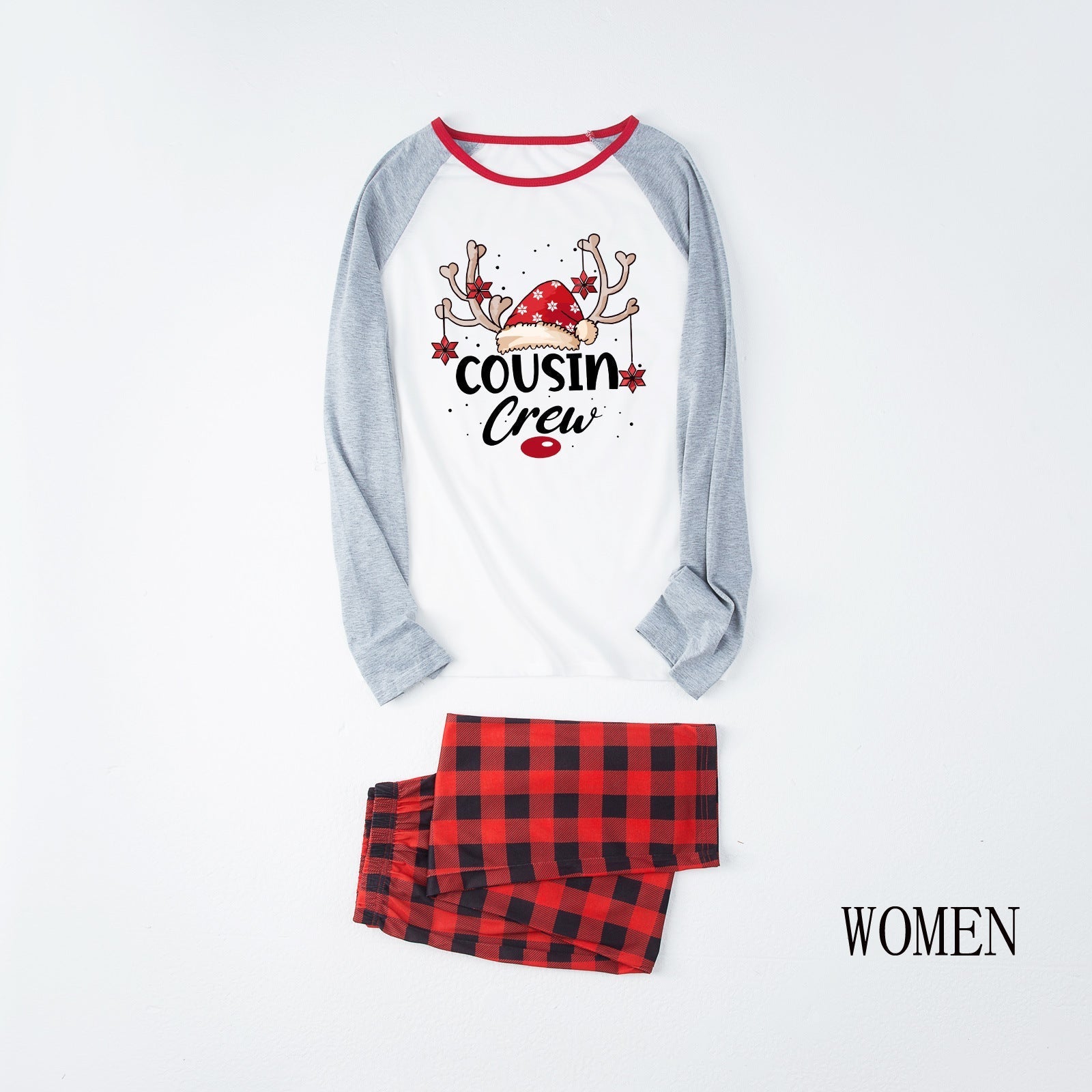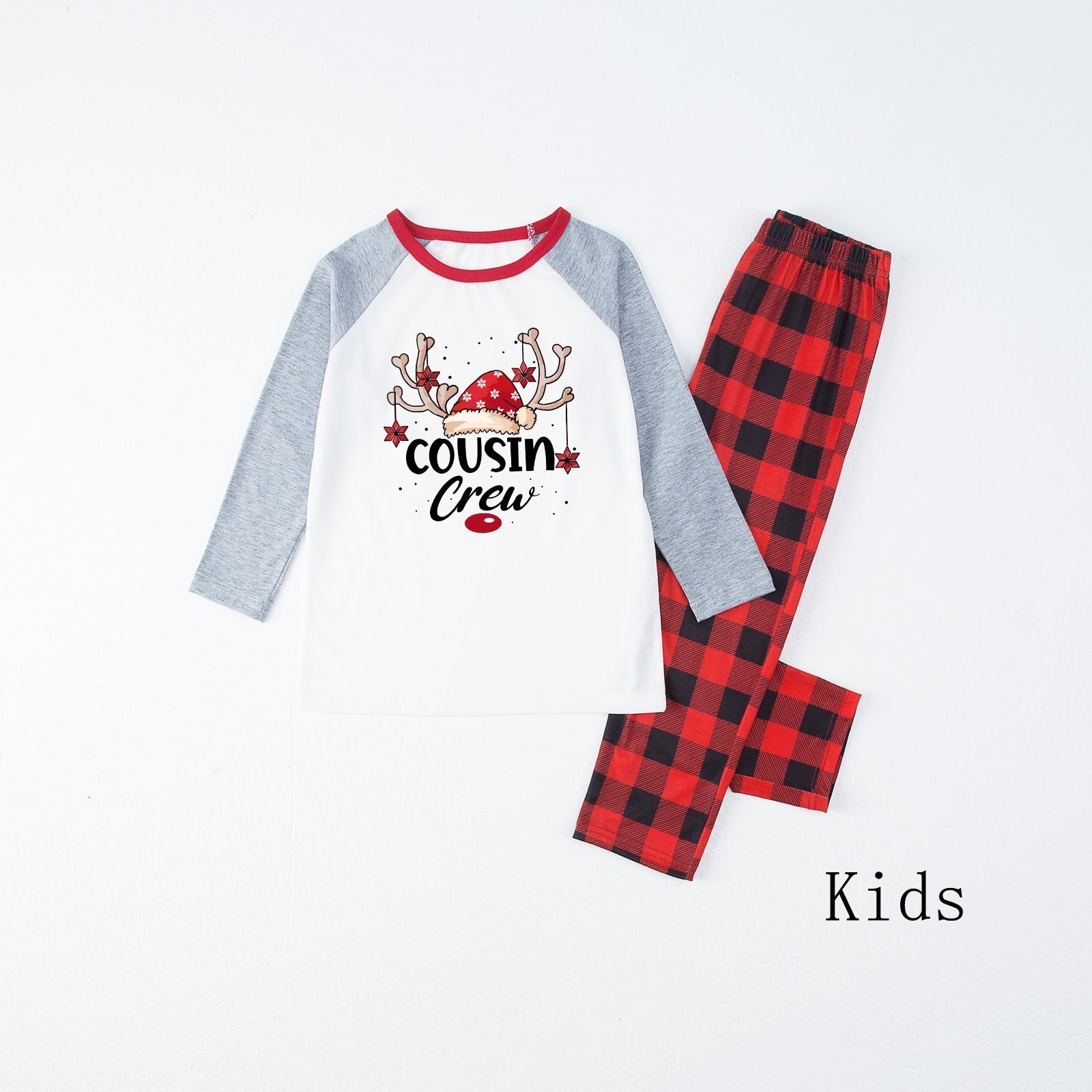 Cousin Crew Christmas red plaid cartoon print matching pajamas