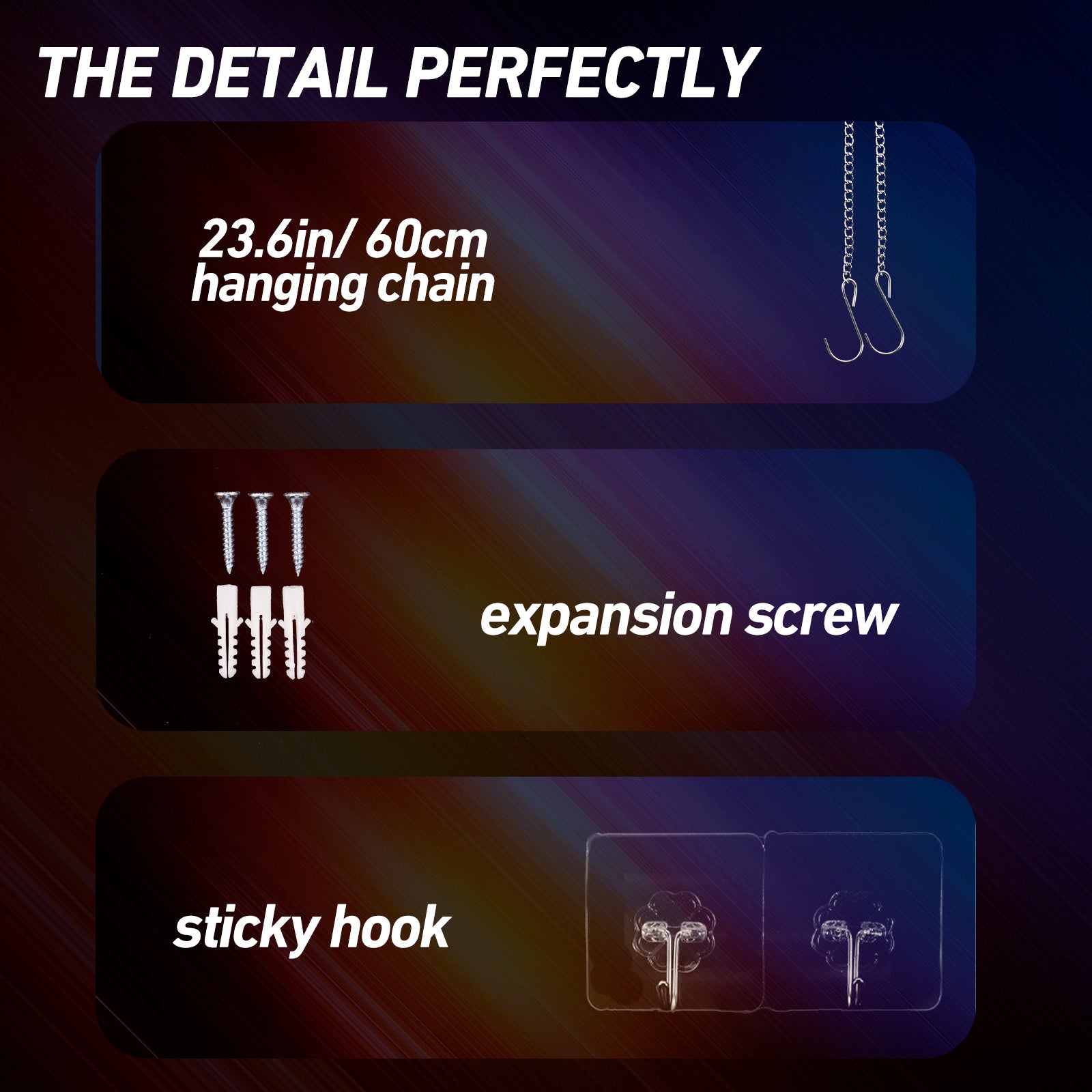 Proceed to attach the decorative screws and chains.