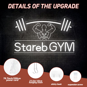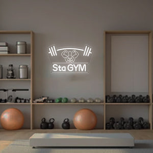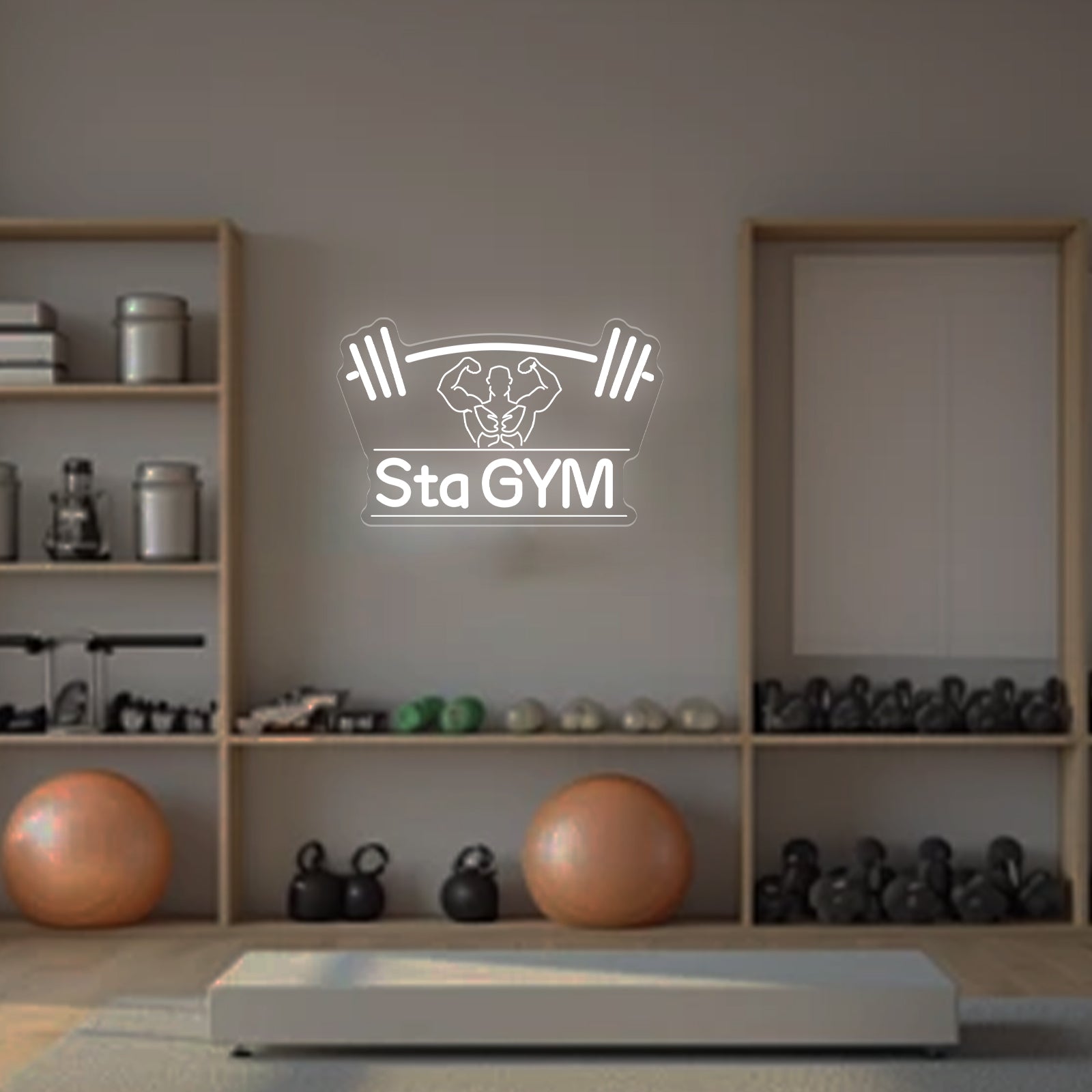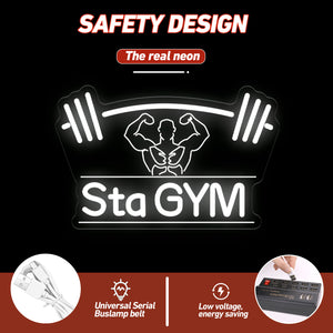 Custom Neon Sign with Barbell & Bodybuilder Silhouette