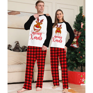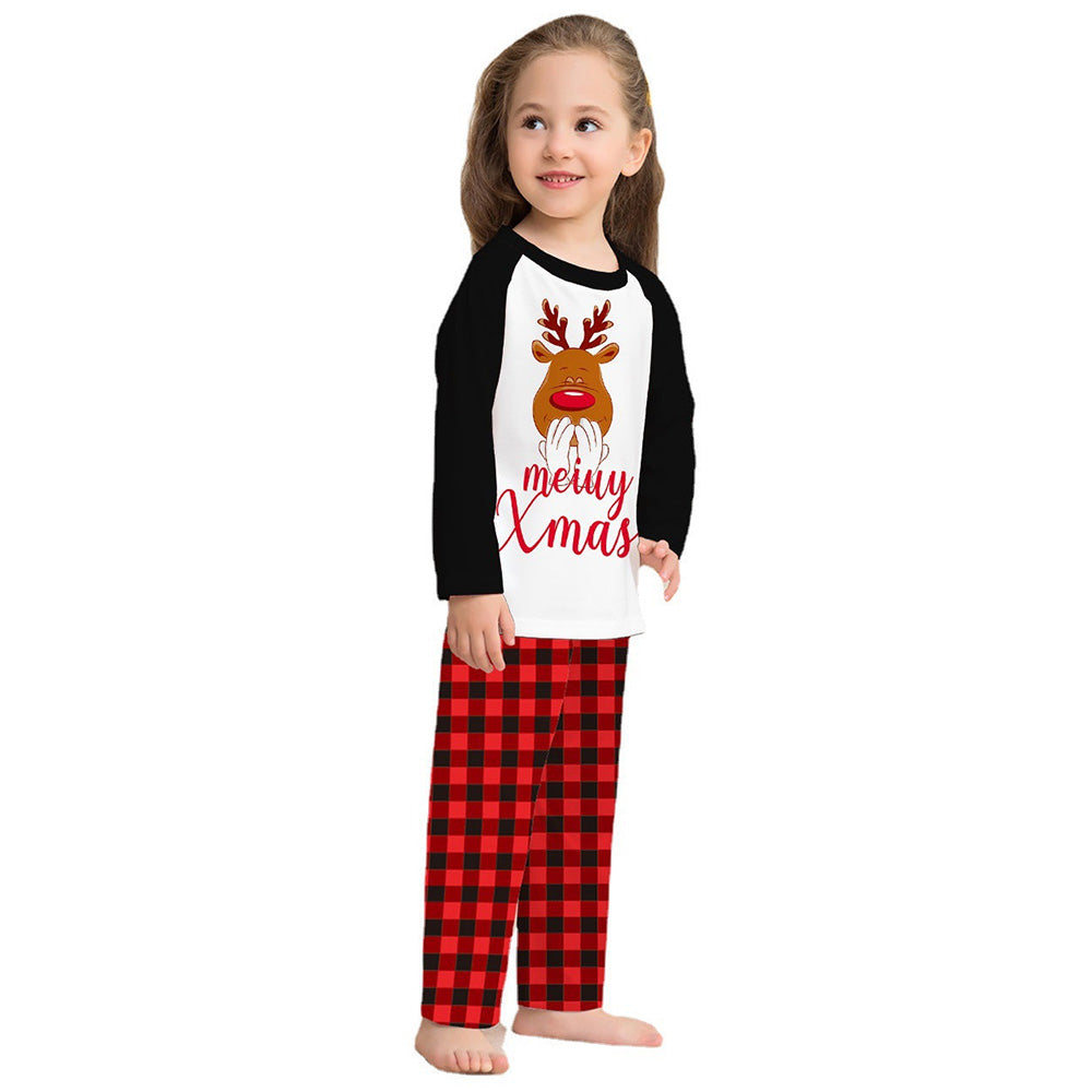 Deer Letter Lattice Printing Christmas Family Pajamas Set