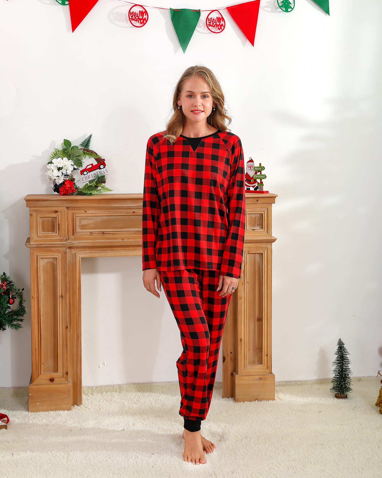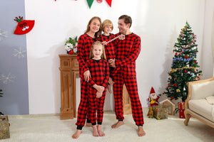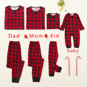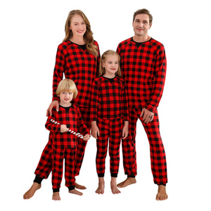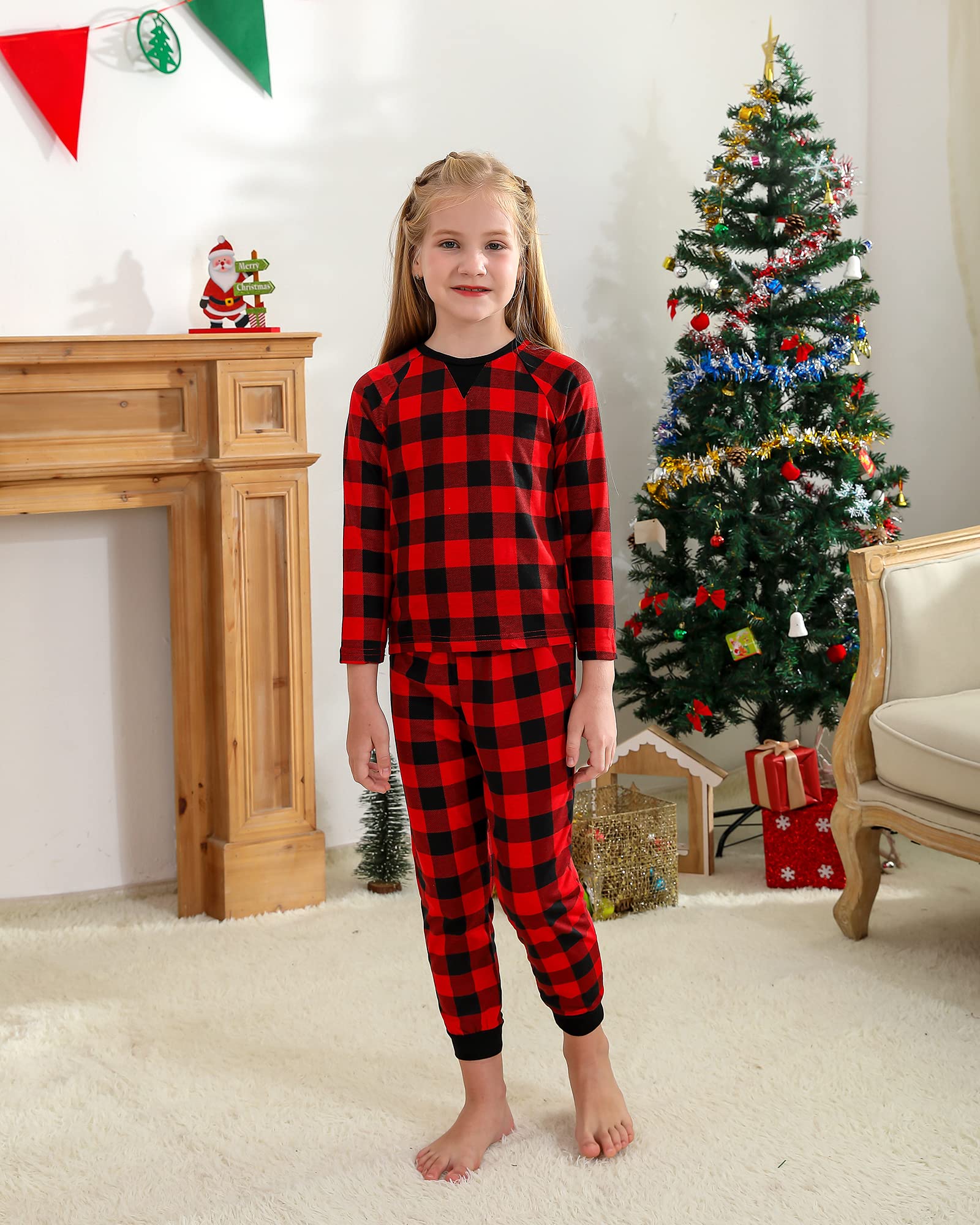 Family Matching Plaid Round Neck Christmas Pajamas Set