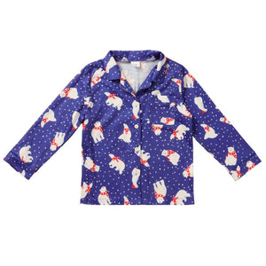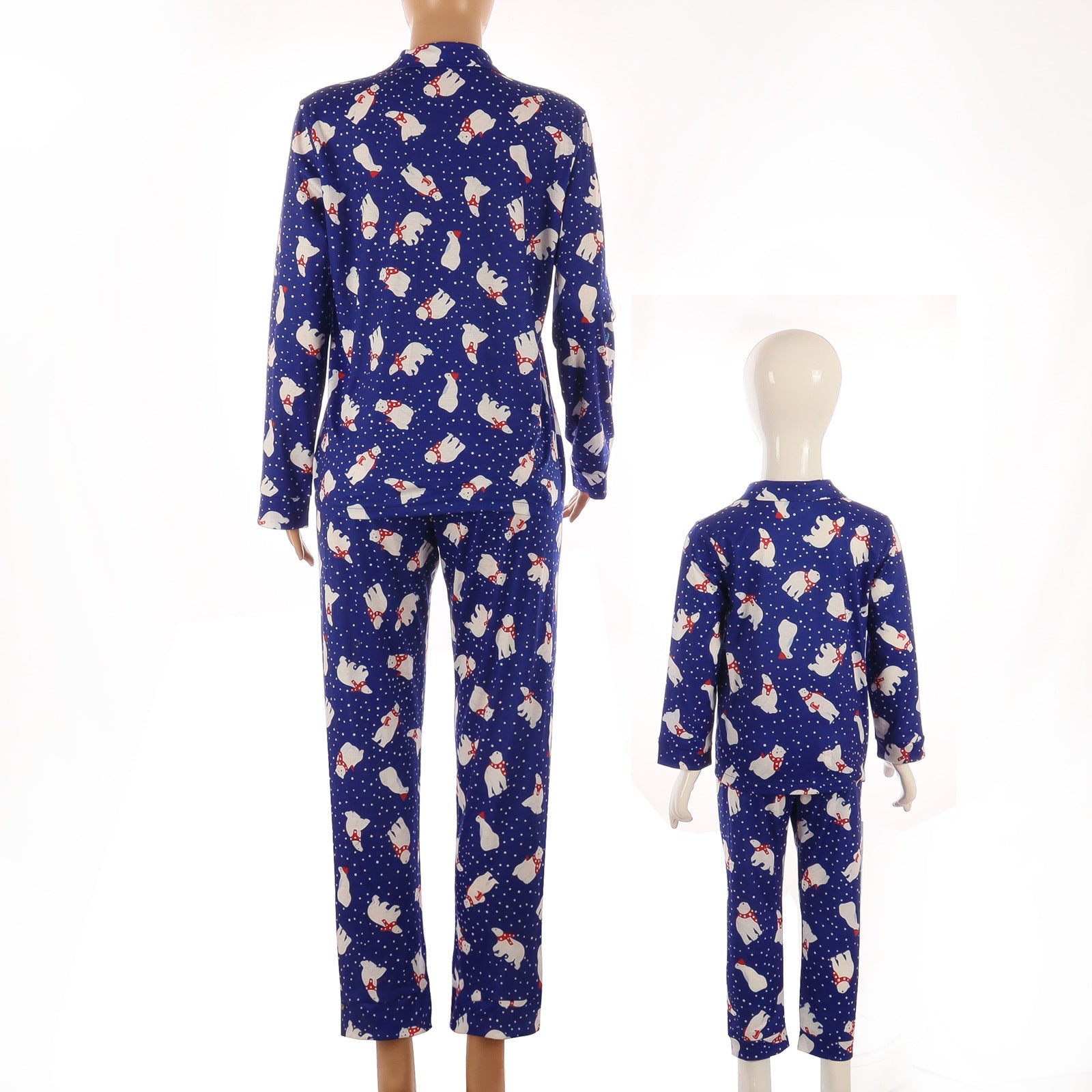 Family Matching Polar Bear Fleece Blue Pajamas Sets