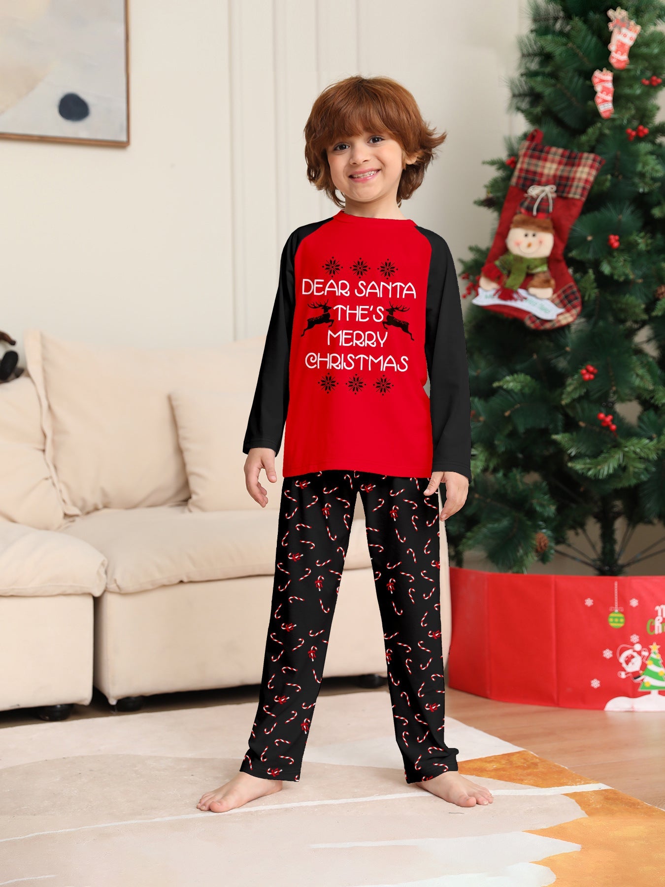 Family Pajama Set with Christmas Cane Fawn Monogrammed
