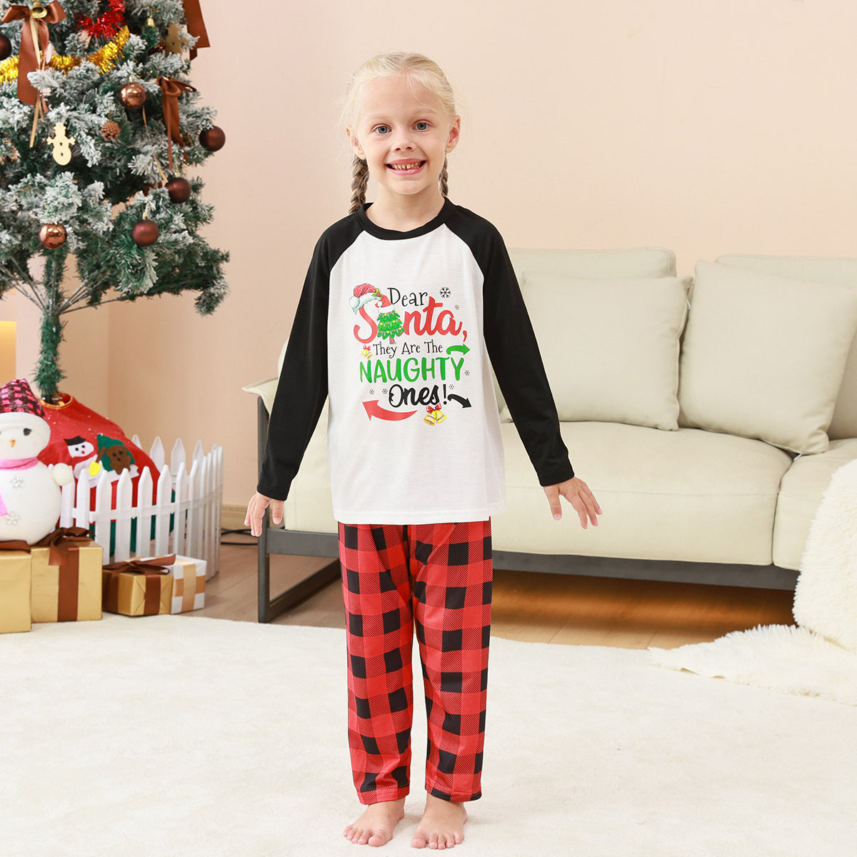 Family Parent-Child Christmas "Dear Naughty" Plaid Pajamas Set