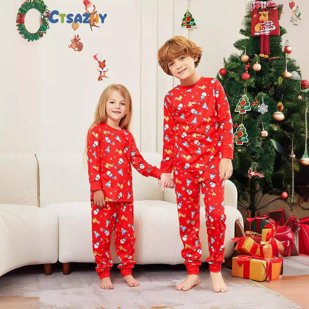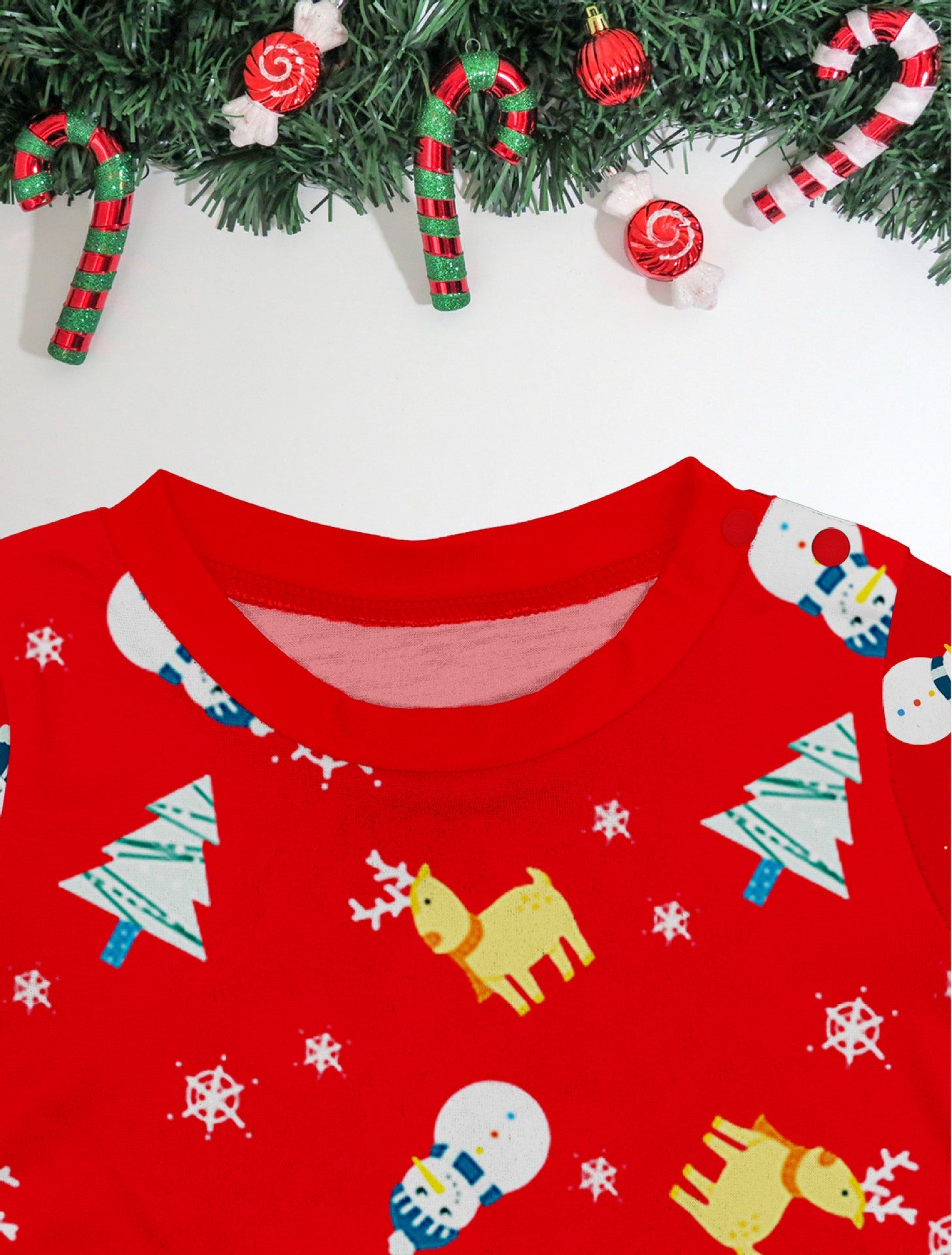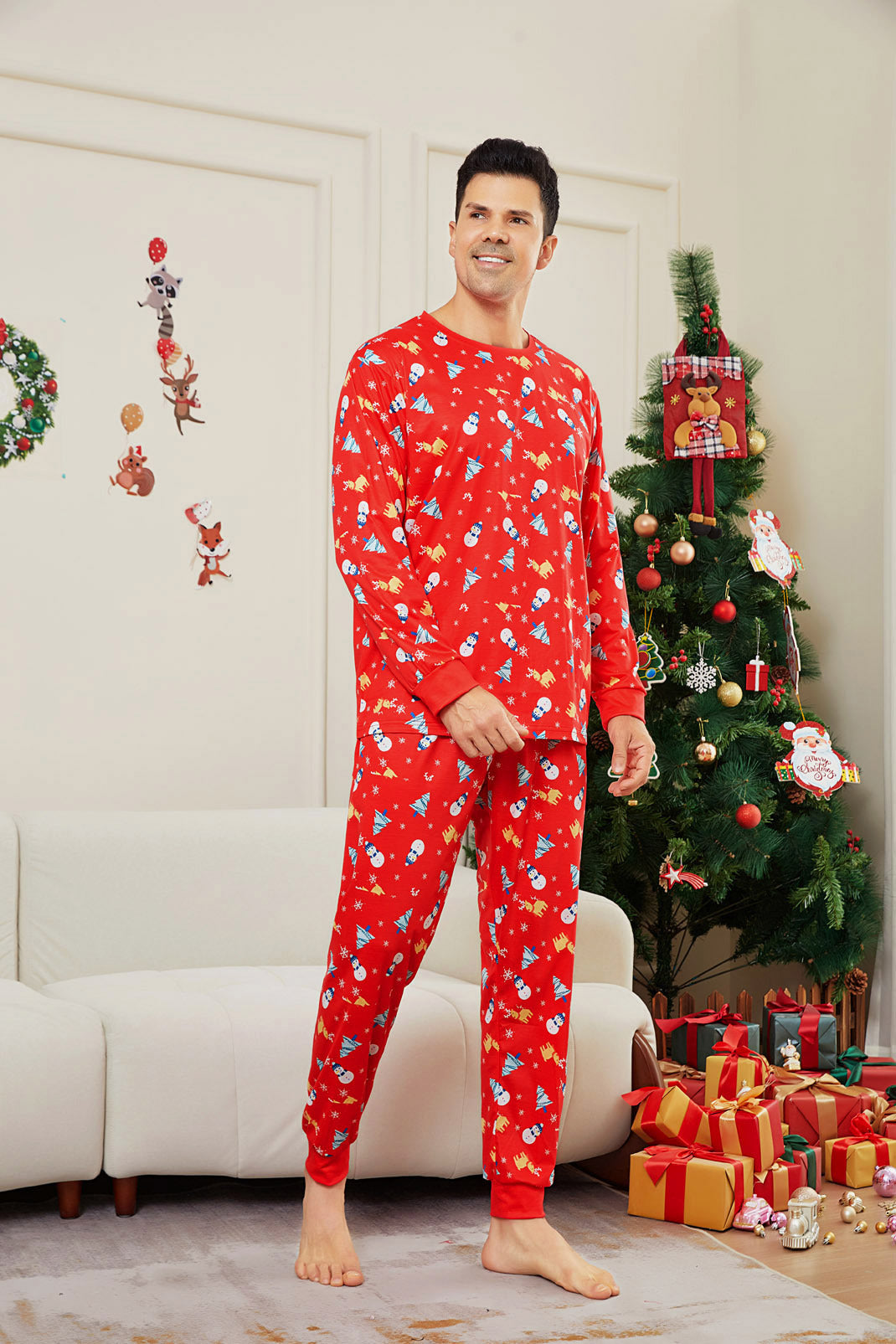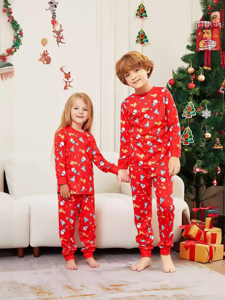 Family Parent-Child Christmas Tree Snowman Deer Printed Pajamas Set
