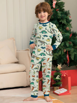 Family Parent-Child Dinosaur Printed Loungewear Pajama Set