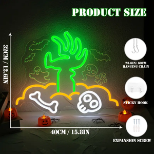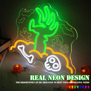 Whether you're setting the mood for a party or enhancing your personal space, "Halloween Tomb Palm Hanging LED Neon Sign" instantly elevates the vibe. Bold, fun, and full of personality, it will become an indispensable highlight in your life, lighting up every step you take.