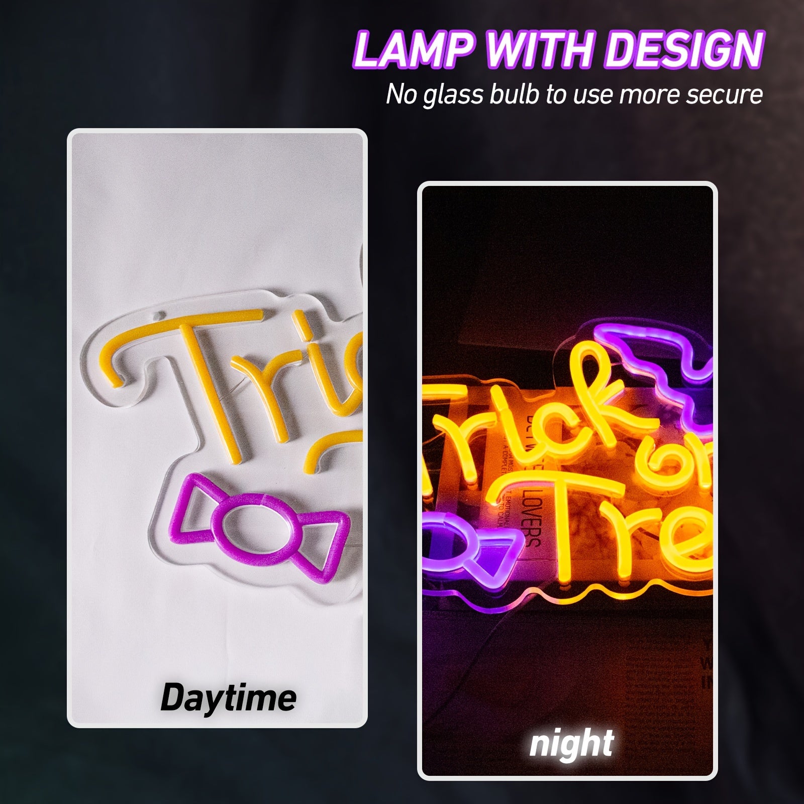 Use "Halloween Trick Or Treat LED Neon Sign" to bring new life to your space. This neon light is not just a decoration; it's the best way to express your personality and attitude. The vibrant light and stylish design fill every room with energy and unique charm.