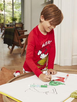 “Merry Christmas” Family Matching Grinch Cartoon Print Pajama Set
