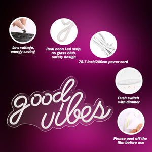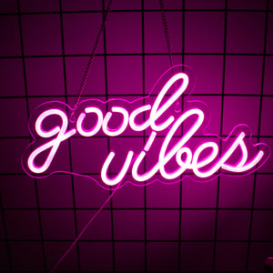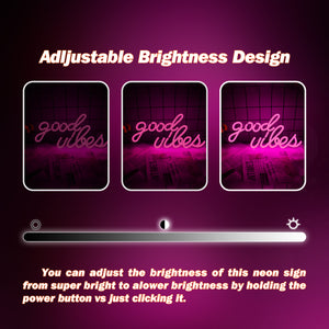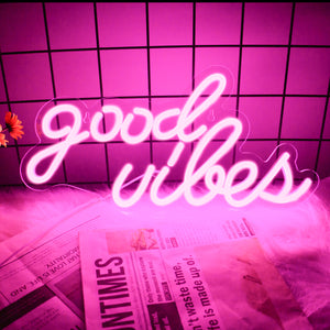 Whether you're setting the mood for a party or enhancing your personal space, "Pink Good Vibes LED Neon Sign" instantly elevates the vibe. Bold, fun, and full of personality, it will become an indispensable highlight in your life, lighting up every step you take.